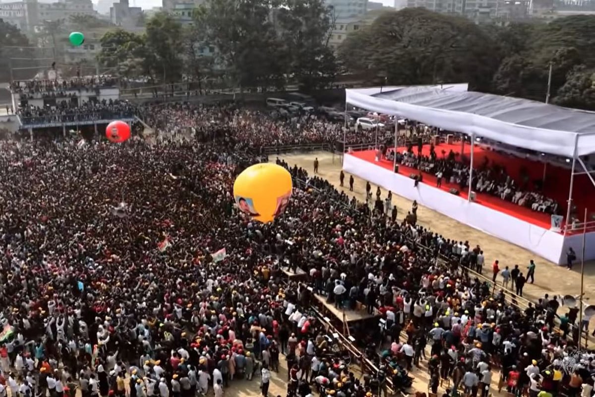 জনসভা ঘিরে ভোর থেকে চট্টগ্রাম নগরীর বিভিন্ন ওয়ার্ড, উপজেলা, কক্সবাজার ও তিন পার্বত্য জেলা থেকে ব্যানার ফেস্টুন, রঙ বেরঙের পোশাক পরে মিছিল নিয়ে লোকজন আসতে শুরু করে সমাবেশস্থলে।