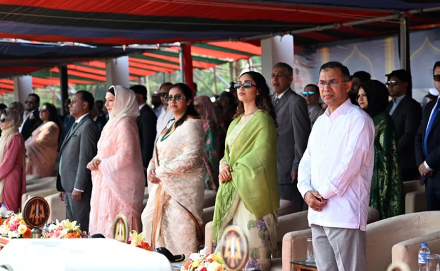 এর আগে সকাল ৯টা ৫৫ মিনিটে প্রধানমন্ত্রী তারেক রহমান প্যারেড গ্রাউন্ডে পৌঁছালে তাকে স্বাগত জানান মুক্তিযুদ্ধ বিষয়ক মন্ত্রী, প্রতিমন্ত্রী এবং তিন বাহিনীর প্রধানগণ।