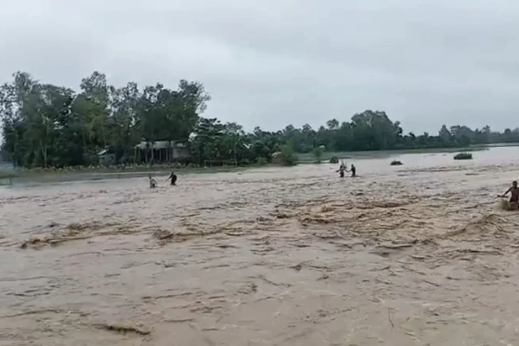 পাহাড়ি ঢলে ঝিনাইগাতীর মহারশি নদীর পানি বিপদসীমার ওপর
