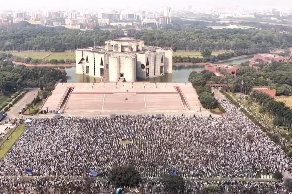 স্লোগানে স্লোগানে প্রকম্পিত সংসদ ভবনের দক্ষিণ প্লাজা