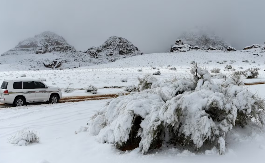 সৌদি আরবে বিরল তুষারপাত