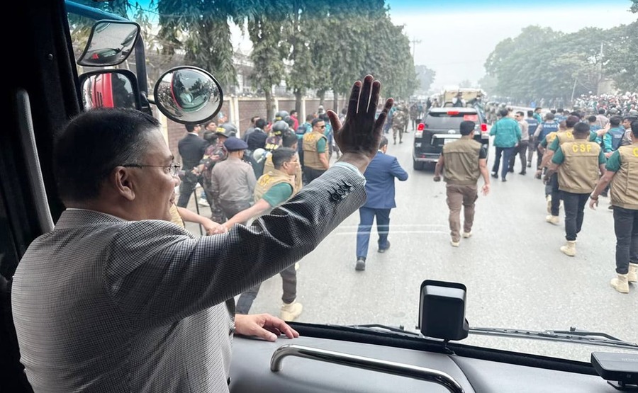 বাসে চড়ে সংবর্ধনাস্থলে তারেক রহমান