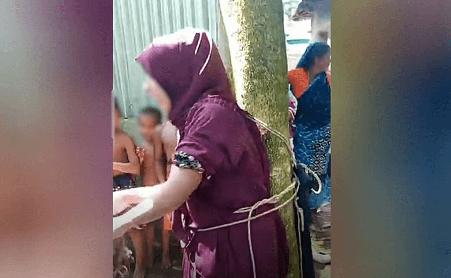 স্ত্রীর স্বীকৃতি চাওয়া নারীকে গাছে বেধে নির্যাতন